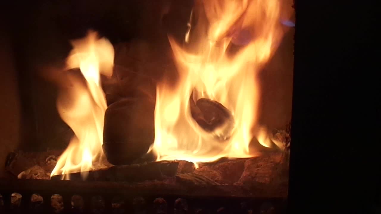 Deshalb habe ich mir gerade noch mal angesehen, wie sich der erste Stiefel im Feuer gewunden hat. Da ich ihn etwas unsicher in den Ofen gestellt hatte, drohte er anfangs bei geöffneter Ofentür nach vorn zu fallen. Ich wollte aber den Schaft in voller Pracht erleben. So habe ich den Stiefel dann nach Hinten angelehnt. Wegen der Rauchentwicklung musste ich die Ofentür schließen. Das Zusammenfallen des Schaftes war im Flammenmeer gar nicht zu erkennen. :shock: Das Aufbäumen der Spitze kann man einigermaßen sehen. :roll: