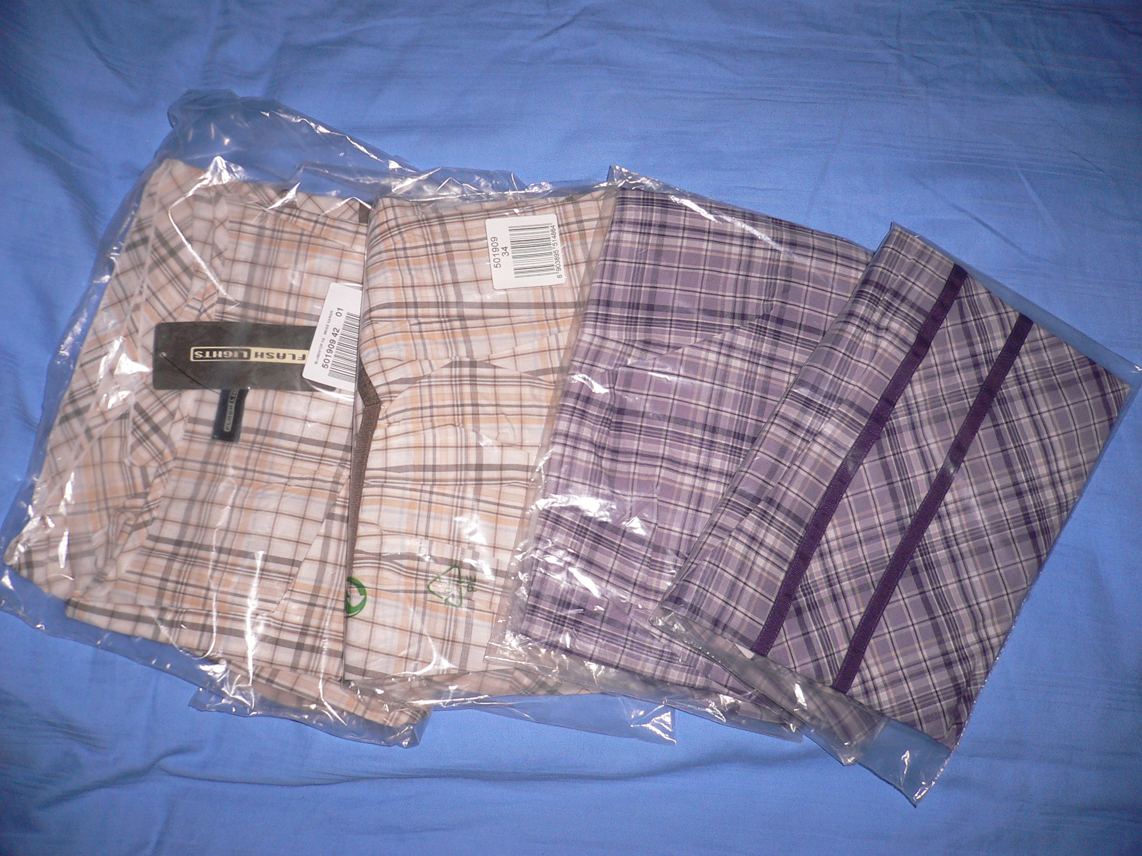 Sie kamen hier vorbei: Vor dem Container lag ein Karton halb auf dem Weg und was macht man? Man tritt ihn zur Seite. Das taten sie auch. Aber was war das? Meine Freundin fand in dem Karton 4 verpackte Shirts. Natürlich nahm sie die mit für mich. Sie weiß ja, dass ich sowas liebe.