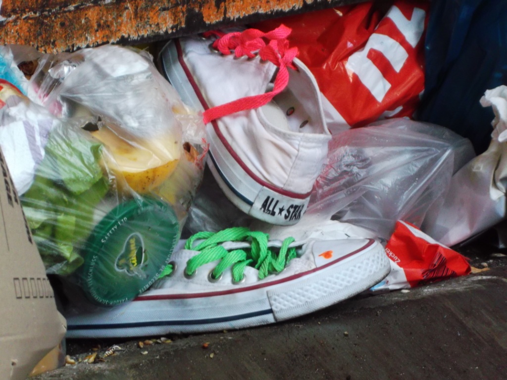 wieder einmal auf der Müllumladestation der Kreismülldeponie warf ich mal einen Blick in einen der Pressmüllcontainer und in einem lag einiges an "normalem" Hausmüll. Frisch in den stinkenden Dreck gepresst, waren wohl vor wenigen Minuten diese süßen Girly-Chucks einen schmutzigen und pressanten Tod gestorben: