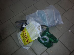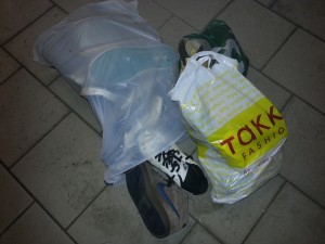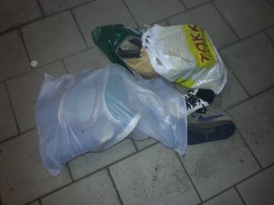 Das ärgert mich doch noch bis heute, obwohl es schon paar Wochen her ist!! Da hätte ich einen ganzen großen KARTON(!) voller Schuhe abräumen können. Ungefähr 15-20 Paare, Markenschuhe von Adidas, Nike und viele Noname. Aber ich hatte keine Transportmöglichkeit. Da ich aber auch nicht damit gerechnet hatte, dass nachts noch jemand anderes auf diese Idee kommen würde da aufzukreuzen, ließ ich den Karton an einer Ecke stehen. Sollte ja nur ganz wenige Minuten dauern und dann wäre ich zurück, es wäre meins, und die Welt in Ordnung.