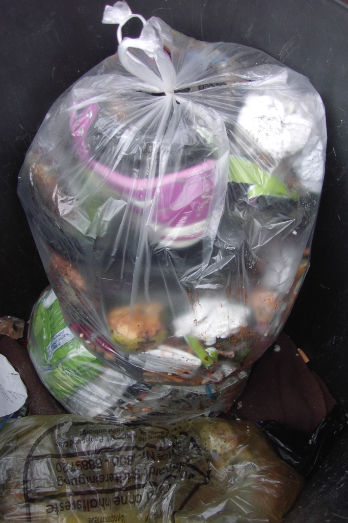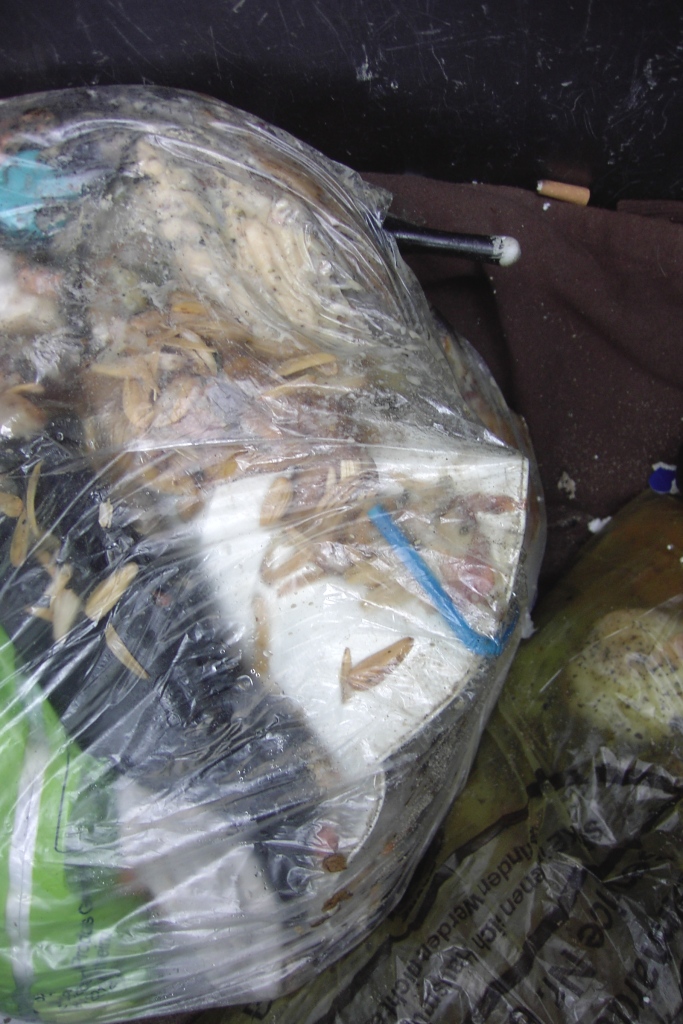 Behutsam nahm ich die oberen Müllbeutel weg und nach ein paar Lagen Abfälle, kam auch wieder nach Tagen alles zum Vorschein.