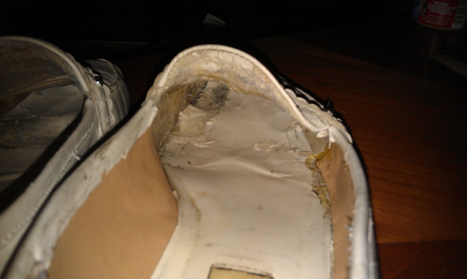 Auch ein Musterbeispiel, was Strumpfhosen einen Schuh innerlich aufreiben können.