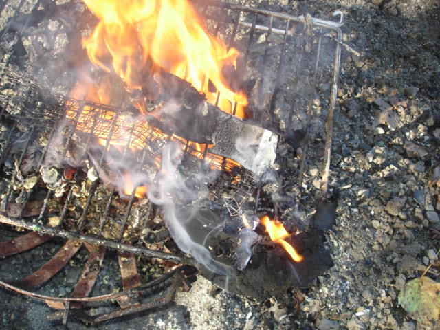 Verbrennen, verschmoren und verkokeln.