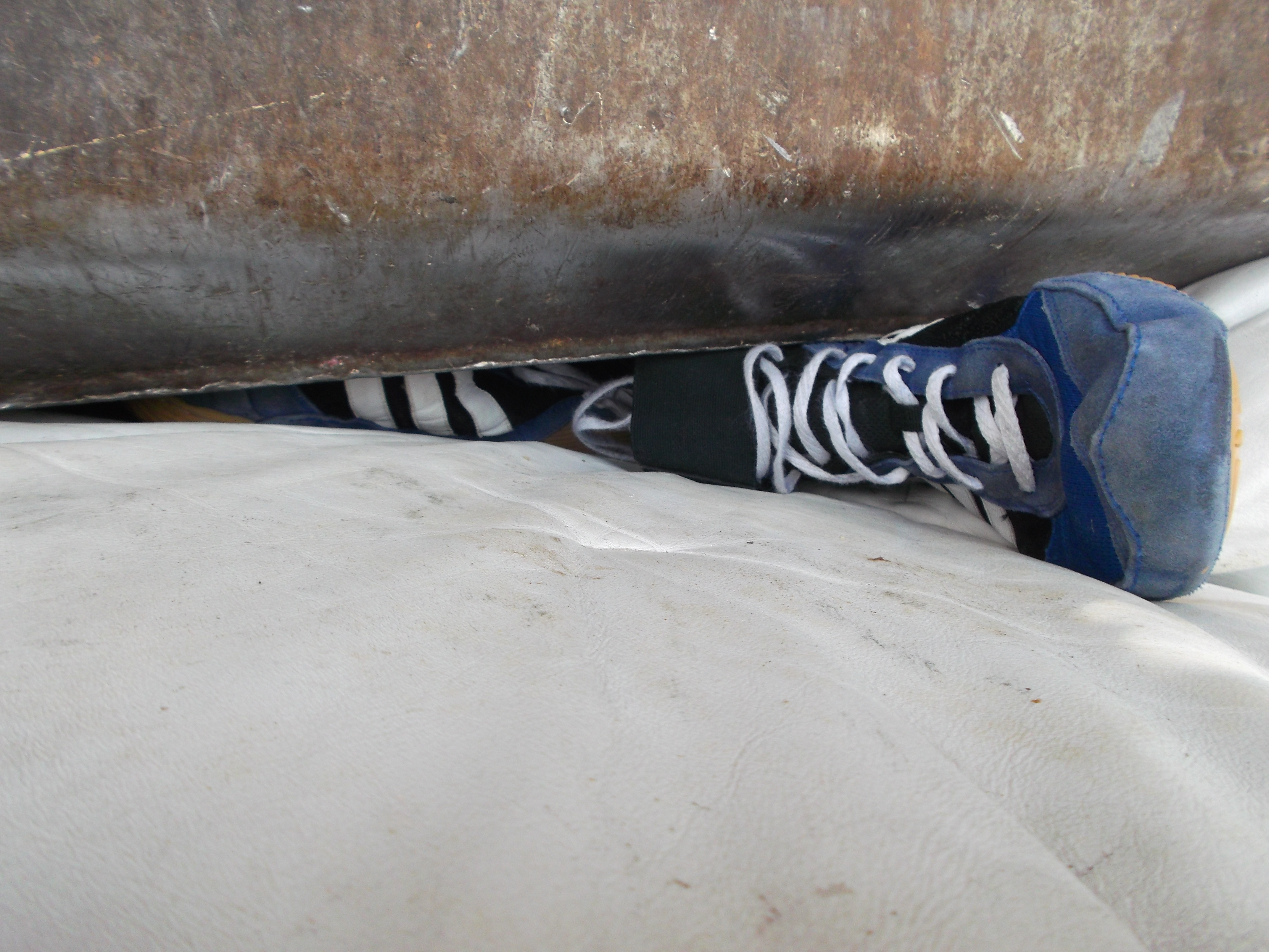 Super auch das Bild auf dem der aufgeplatzte Patchwork-Stiefel zu sehen ist. Sowas können zarte Frauenfüsse nicht anrichten, dazu braucht es die stahlharte Kraft der Sperrmüllpresse.