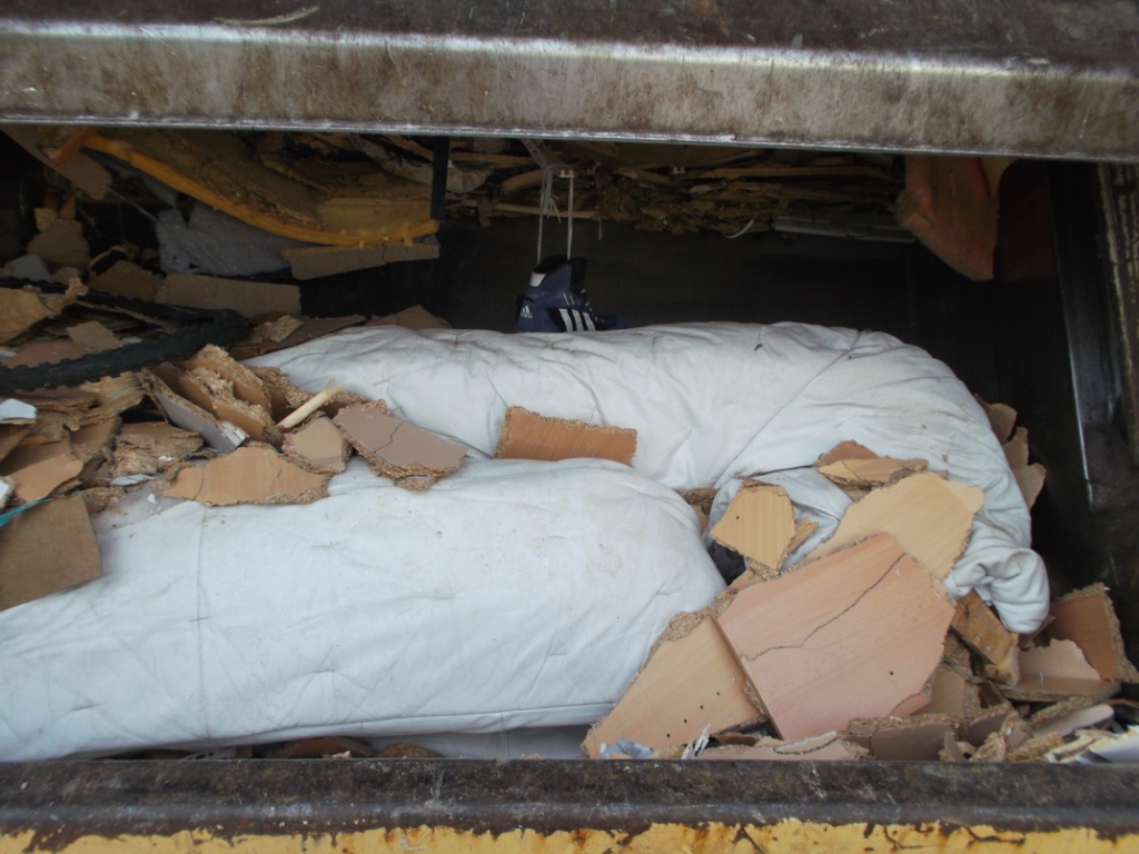 die Sperrmüllabfuhr hatte noch einiges wegzupressen, um den Gerümpelhaufen wegzubekommen: