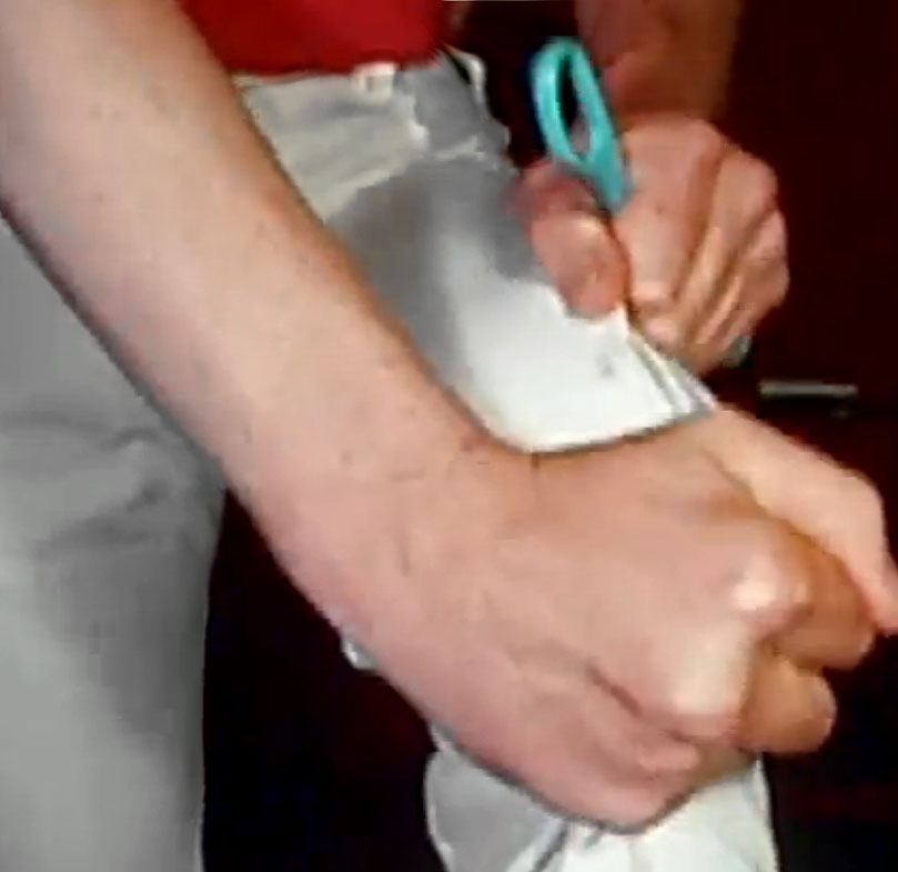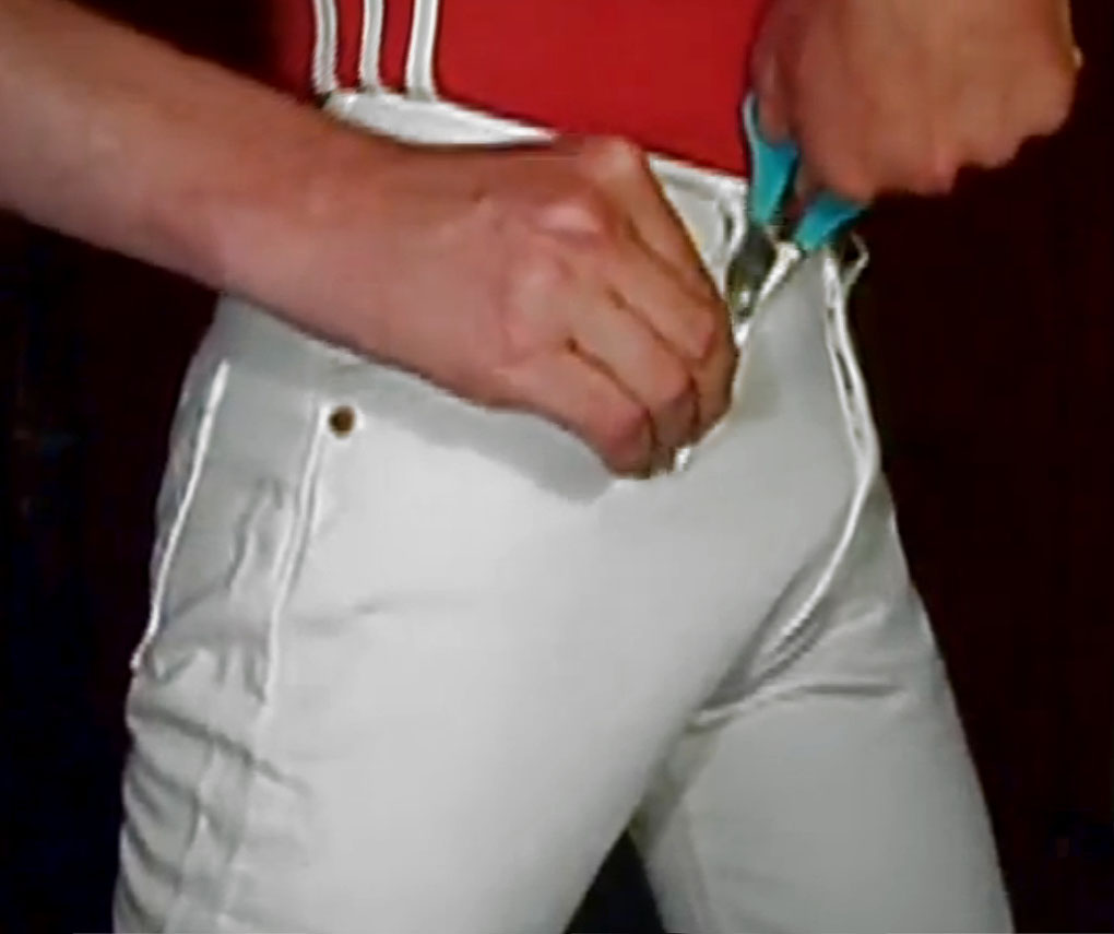 das gab mir eine nette Idee, schnell schnappte ich mir die Schere, und ich erzählte dem Verkäufer, dass ich die Jeans passen wollte.
