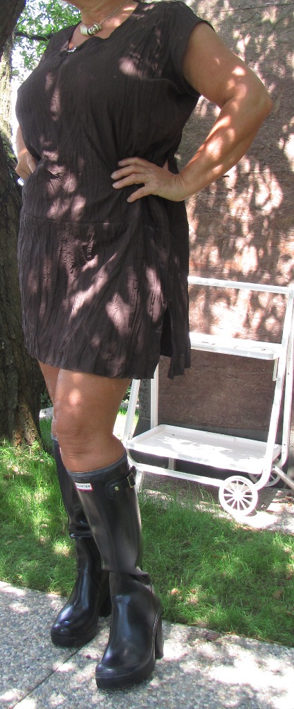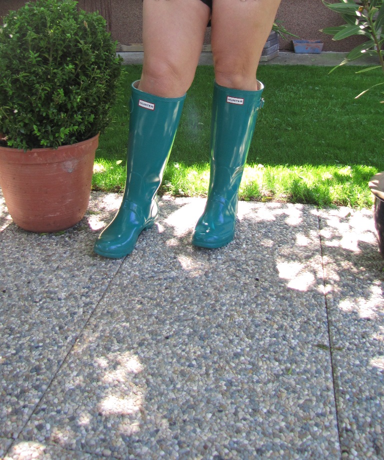 Da die Farbe für mich doch etwas zu gewagt war, habe ich mir noch schwarze Hunter tall gloss zugelegt. Auch tolle glänzende weiche Gummistiefel. Und meine Freundin hat es sich nicht nehmen lassen gleich barfuss reinzuschlüpfen :D
