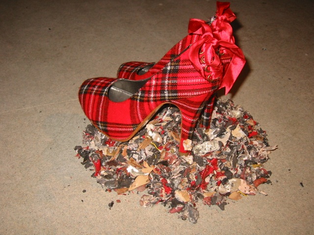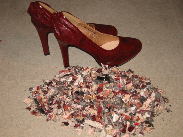 Pumps, Strumpfhosen, Sneakers zum Schreddern.