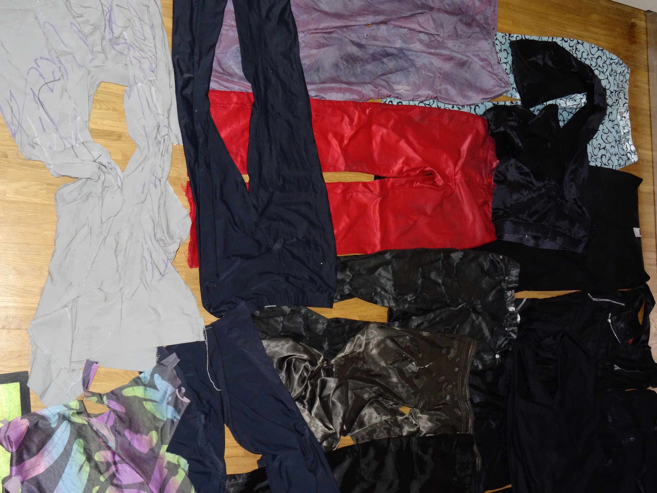 Hallo ich hab mal ein paar Fotos von einigen Shirts und Hosen gemacht, die sich in meinem Lumpensack befinden, viele teile davon sind noch nicht bearbeitet worden. also wenn jemand wünsche hat was Ich mit welchem Teil machen soll bitte schreiben, mal sehen was sich machen lässt.