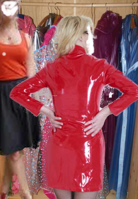 Am Liebsten wäre es mir, daß Du zu Hause in diesem Kleid herumläufst. Dann höre ich immer wo Du gerade bist und Du kommst auch nicht mehr auf dumme Gedanken und holst Dir Plastiksachen. Aber Deine Reaktion, wenn das Zeug brennt, ist einfach tollund zum Einkaufen darfst Du dann aber einen Plastikmantel oder ein Plastikcape über das Kleid ziehen. Eine Plastikschürze kaufe ich Dir auch noch, damit Du das Kleid nicht schmutzig machst.