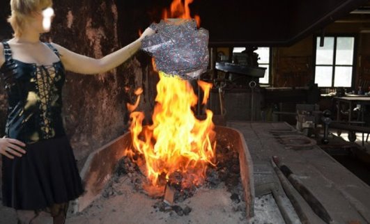 Dann fuhr sie mit Mike zu einer Schmiede. Sofort ging es zur Feuerstelle. Mike fuhr zusammen, als Lea befahl : Ausziehen, aber schnell !