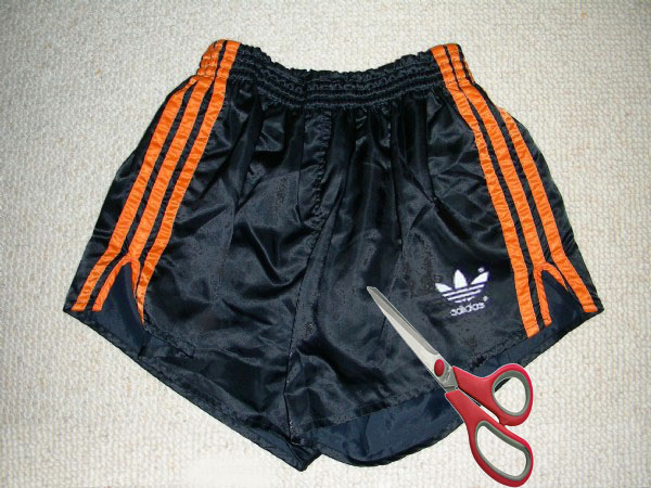 oh nein, nicht in Frage, dass ich meinen süßen schwarzen adidas Shorts beschädigen! Ich habe nicht die geringste Ahnung, wo ich eine neue bekommen können, ist es meine schönsten Höschen. ich kann mir nicht vorstellen, dass ich eine Schere greifen, und schneiden in der glänzenden Material