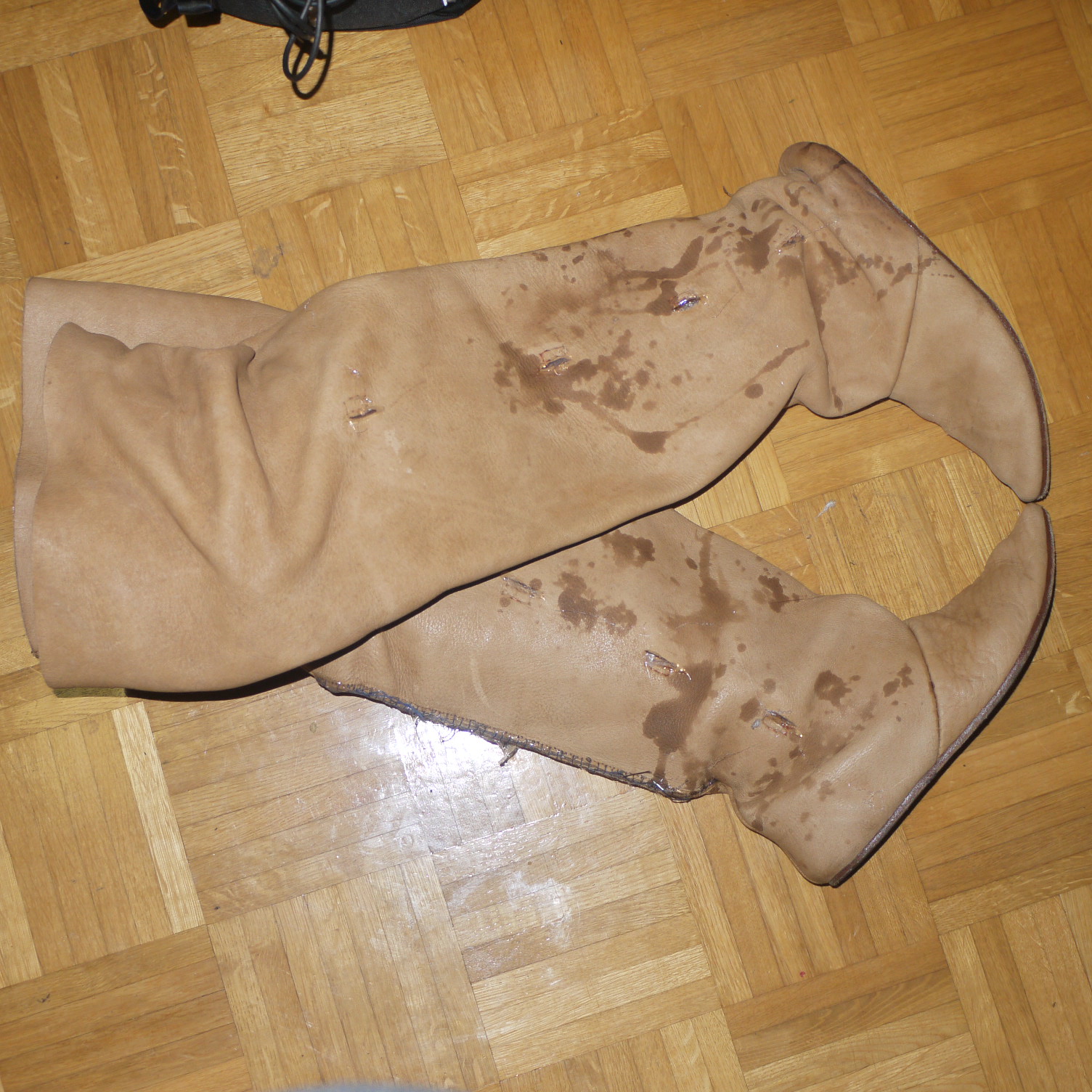 Dann haben die armen Stiefel es geschaft und du kannst ihre vollgewichsten Körper in die Tonne stecken oder verbrennen.