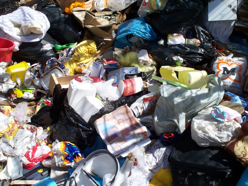 vor wenigen Wochen war ich wieder einmal auf der Kreismülldeponie und dort wird derzeit der von den Müllautos verkippte Hausmüll mit dem Müllverdichter einplaniert und ein Teil kullert den Abhang herunter. Eine Sache, die fast jeden Tag vorkommt und speziell beim herunter kullernden Hausmüll sieht man immer wieder am besten, was alles so in den Mülltonnen verschwindet: Alte Fußbälle aus der Mülltonne eines Sportzentrums sorgen natürlich für etwas Heiterkeit bei den Müllwerkern, oder große alte Stofftiere purzeln kopfüber den Müllabhang herunter. Das passiert auch mit noch verschlossenen Müllsäcken usw. Als ich dort war, hatte gerade die Müllabfuhr schnell verkippt, um noch in einer zweiten Tour die anderen Restmülltonnen eines Ortes leeren zu können. Eine Mülltüte war wohl nicht richtig oder gar nicht verknotet worden, bevor sie in die Mülltonne gestopft worden war und durch die Bewegungen des Verdichters ging sie auf und der darin befindliche Abfall rutschte heraus und kullerte ebenfalls den Abhang runter.