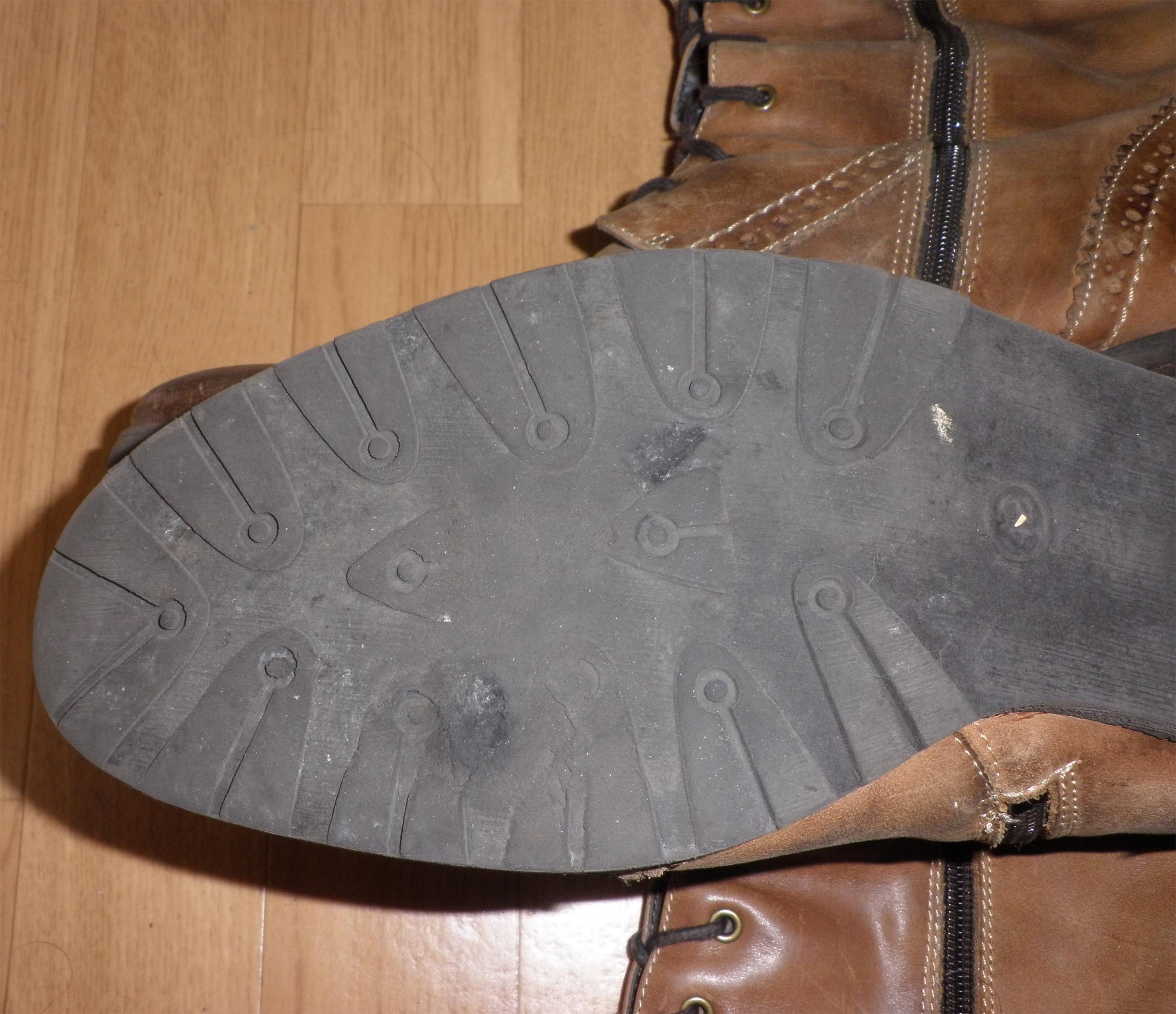 Die Stiefel sind schon sehr viele Kilometer gegangen, denn beim laufen geben die Sohle, schon recht dünn, und der Absatz fast wie bei einer Luftpolsterung nach.