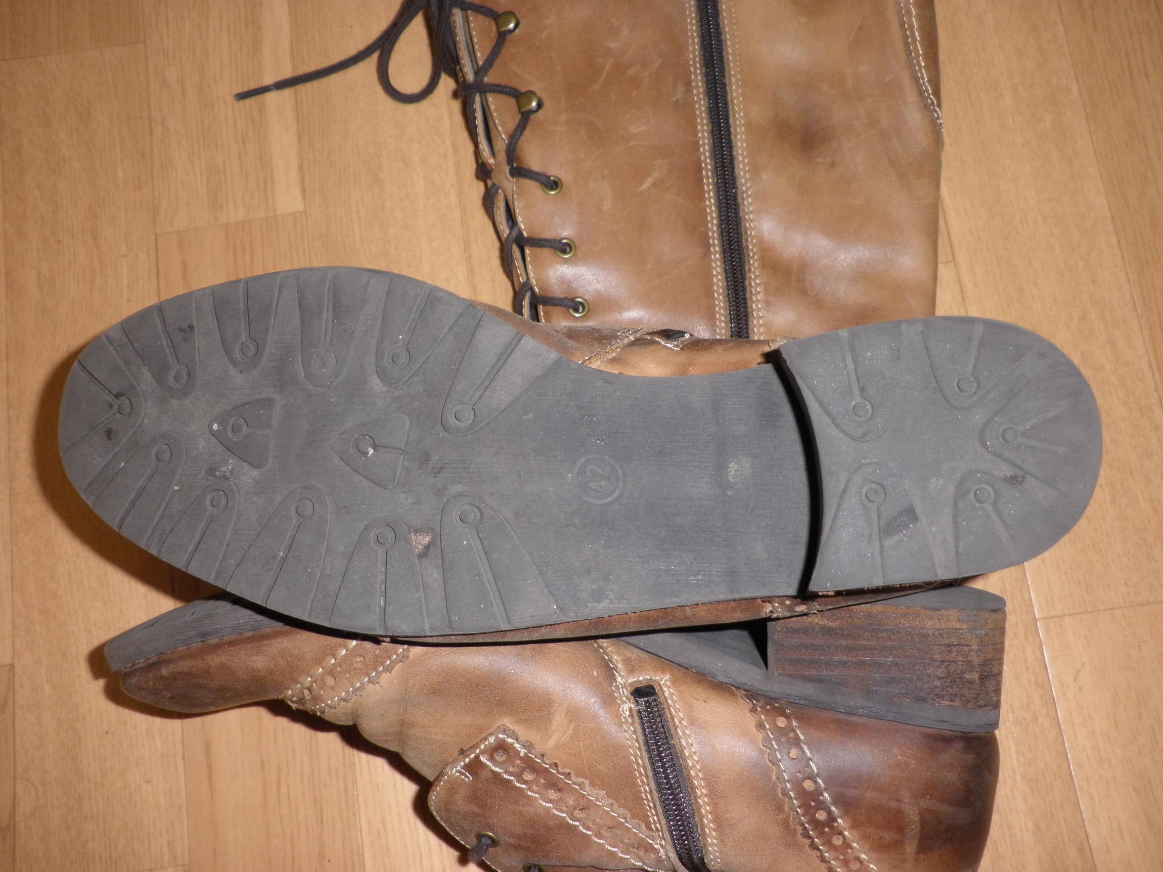 ich konnte neue "alte" Stiefel von Tamaris ergattern. Wie auf den Bildern zu sehen ist, hat die Sohle schon einiges erlebt. Auch die Absätze sind schon etwas abgelaufen.