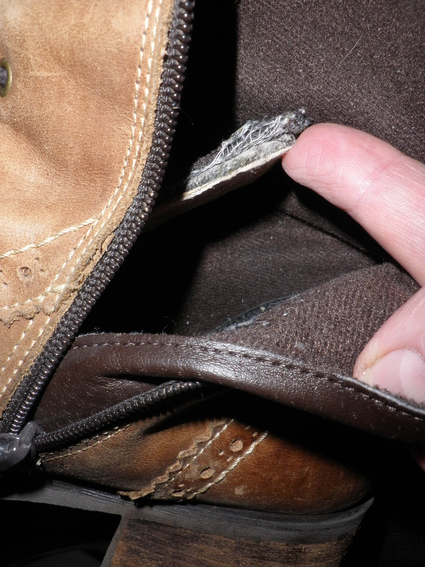 Nachdem ich die Stiefel gestern ausgiebig getragen habe, hatte ich beim Ausziehen des rechten Stiefels irgendwie ein komisches Gefühl. Ich habe mir den Stiefel dann mal genau angesehen und festgestellt, dass die komplette Innensohle, also mit Verstärkung und Metallsteg, sich von der Sohle gelöst hatte. Zu meiner Freude sind die Stiefel aber weiterhin tragbar.
