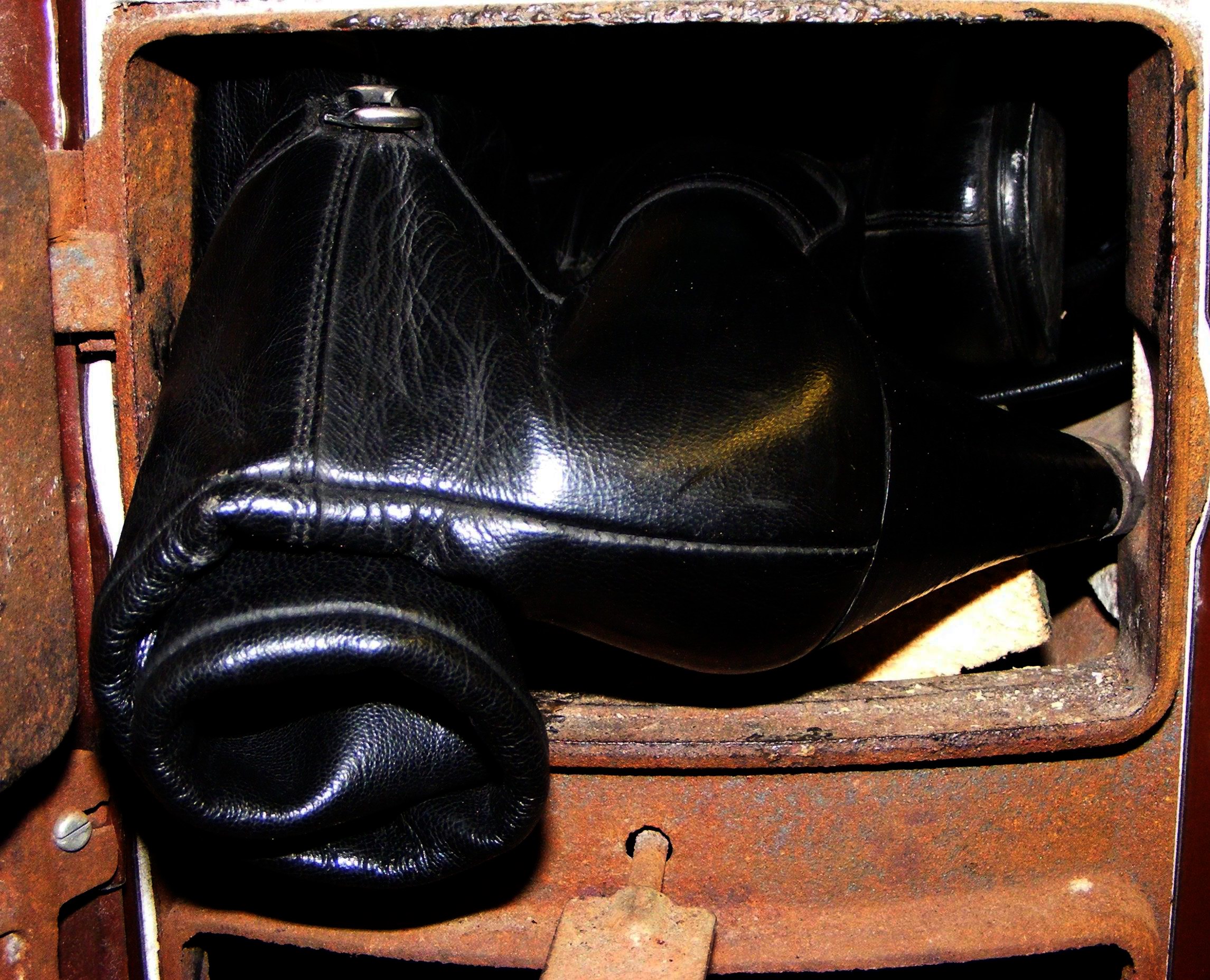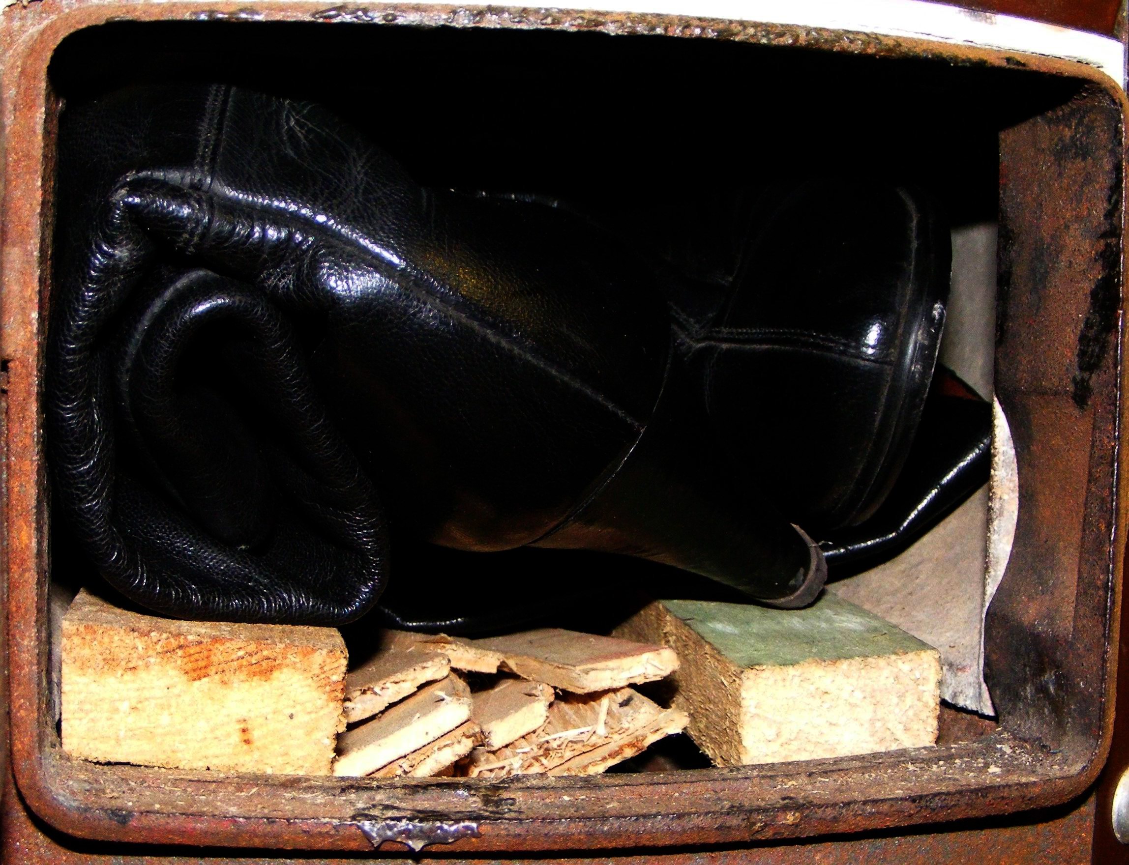 ... ab in die Laube. Die Reißverschlüsse werden ein letztes Mal wieder zugezogen, die Schäfte sorgfältig und liebevoll zusammengerollt, damit die Stiefel vorschriftsmäßig in den Ofen eingeführt und ausreichend Platz finden, um verbrannt werden können.