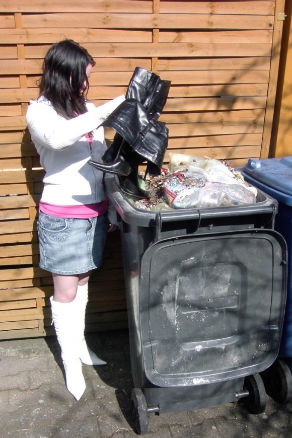Die Stiefel waren einfach zu viel Abfall für die schon volle Mülltonne!