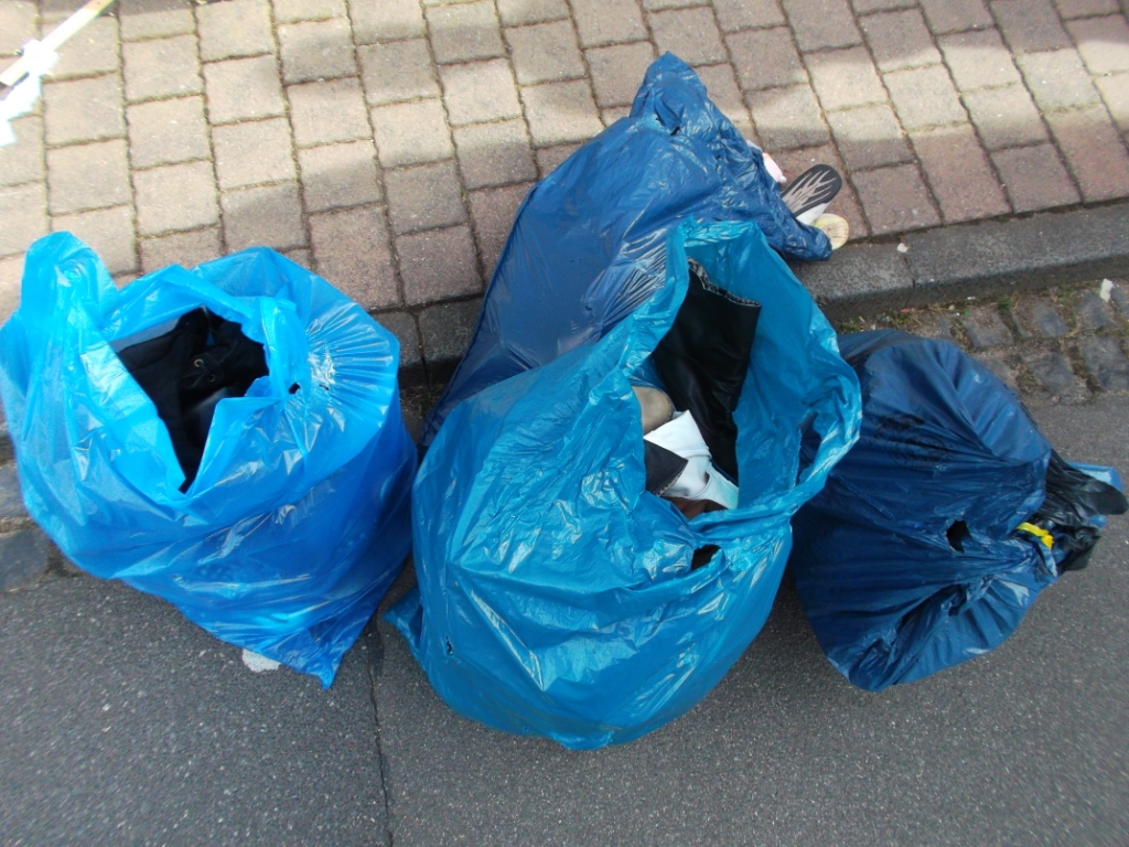 Unfassbar: Keine sonstigen Abfälle, alles nur Schuhe und Stiefel in den Müllsäcken!
