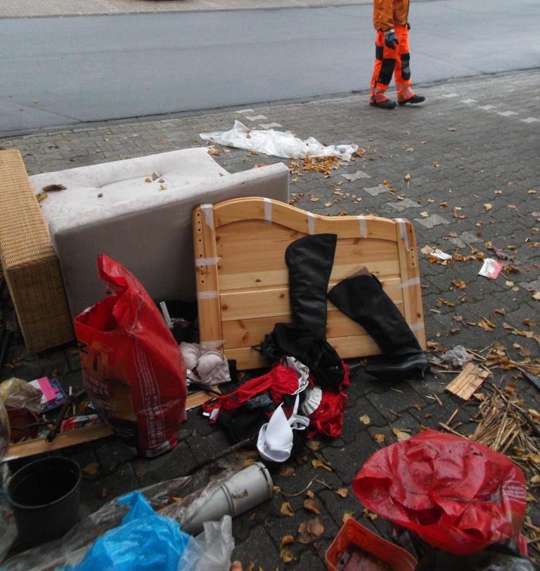 Die "Begeisterung" der Müllmänner hält sich in Grenzen, sich wg. solch einem Dreck bücken zu müssen und dann gibt's auch keine Rücksicht mehr auf zarte Spitzenwäsche. Die latschen mit ihren dreckigen derben Arbeitsschuhen einfach drüber.