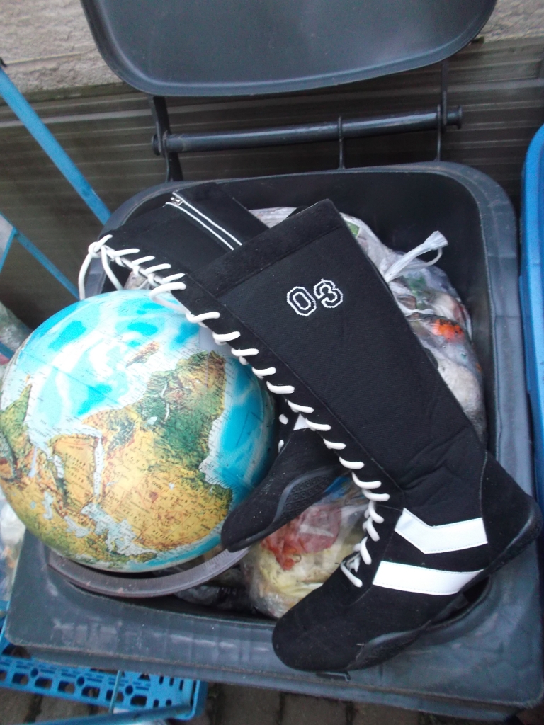 Stimmt! Da waren doch noch Stiefel in die Mülltonne gewandert ...!