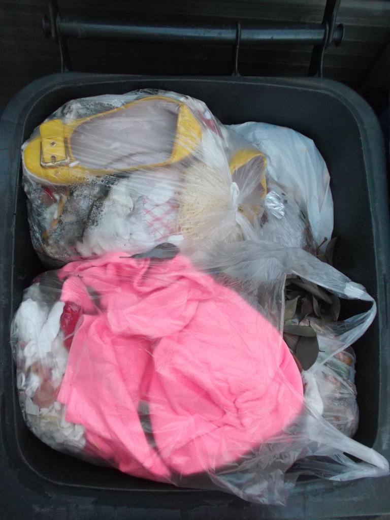 Ausrangierte Schuhe und alte Nudeln haben wir ja schon öfters in Küchenmüllbeuteln zusammen liegen gesehen. Aber habt ihr schon mal so etwas gesehen??