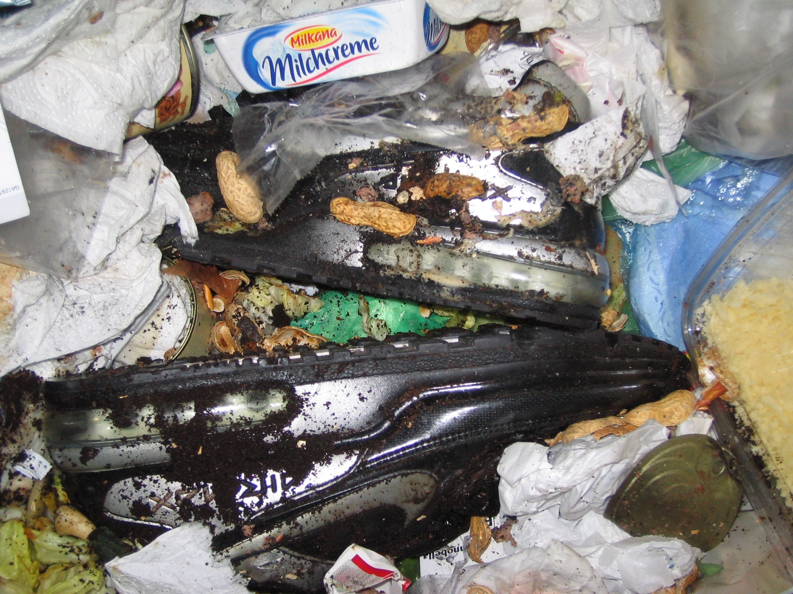 Und was halt sonst so in den Küchenmüll kommt. Tjo in kürzester Zeit aus teuren Markensneakers übelsten Müll gemacht.