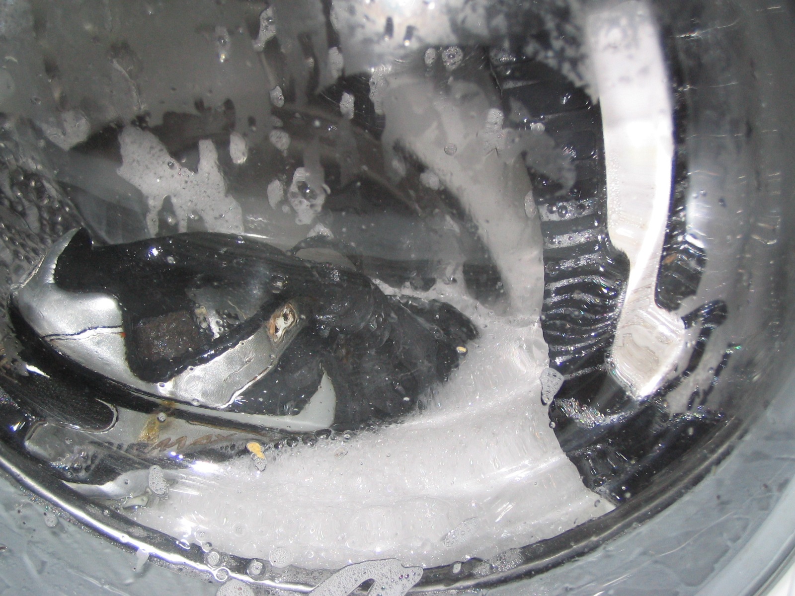 Als erstes brauchten die dann doch mal eine Runde in der Waschmaschine. Ein exklusives Vergnügen, das bei mir SChuhe sonst nie geniessen dürfen. Aber ob des üblen Gestanks musste es bei diesen hier sein.