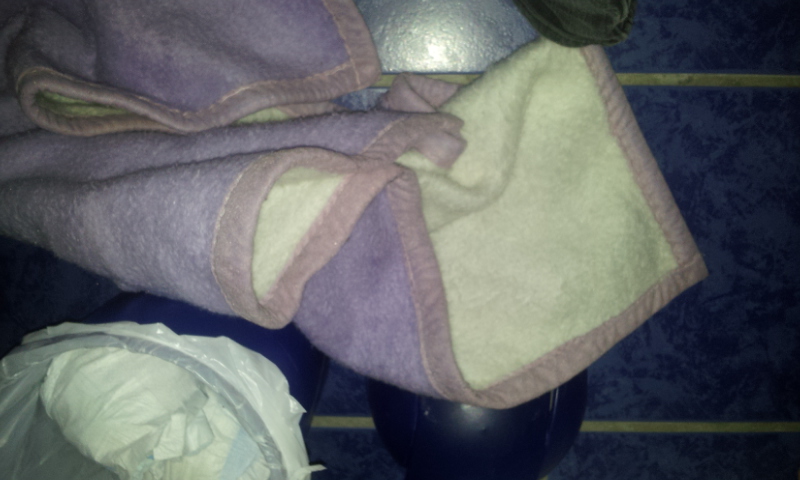 Da lag eine kleine total flauschige Babywolldecke zwischen gebrauchten stinkenden Windeln. Habe sie schnell einmal raus geholt um zu schauen ob sie kaputt ist. Soweit ich auf die schnelle sehen konnte war nichts dran. Dann hörte ich meine Freundin vor der Tür mit der kleinen die ihren Mittagsschlaf beendet hatte. Ich habe die Decke schnell wieder in den Mülleimer gedrückt die Hände gewaschen und bin an die Tür zum aufschließen.