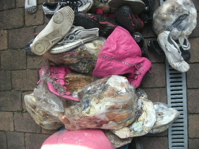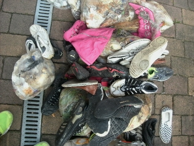 Die Schuhe wurden nochmal durchgesehen und kamen alle in die Mülltonne - wohin sie auch gehörten.