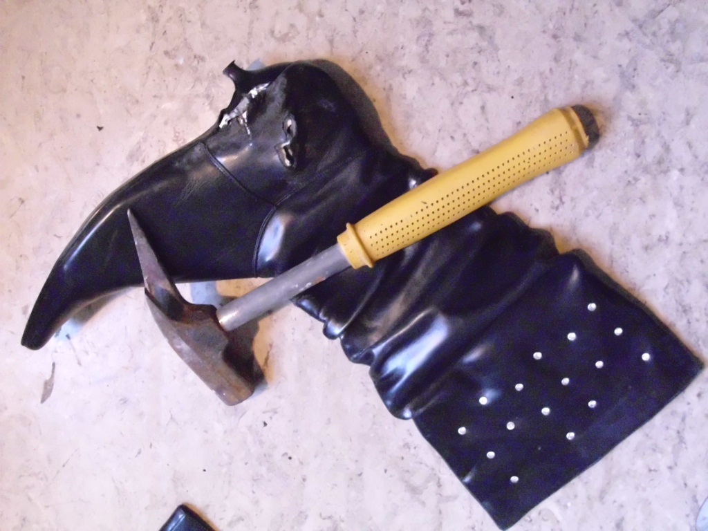 ích habe auf einem Flohmarkt ein Paar geile Stiefel erstanden und leider hielt meine Freude nicht das, was sie anfangs versprach: Das Obermaterial wurde trotz tollem Zustand schon mürbe. Die Stiefel waren untragbar und dennoch einfach ein geiler Anblick. Allerdings hatten sie sich auf diese Weise meiner Meinung nach noch nicht einen Aufenthalt in der Mülltonne verdient. Lange schob ich sie hin und her, bis mich Marina darum bat, sie vor ihren Augen zu schlachten. Damit war das Schicksal der geilen Stiefel besiegelt: