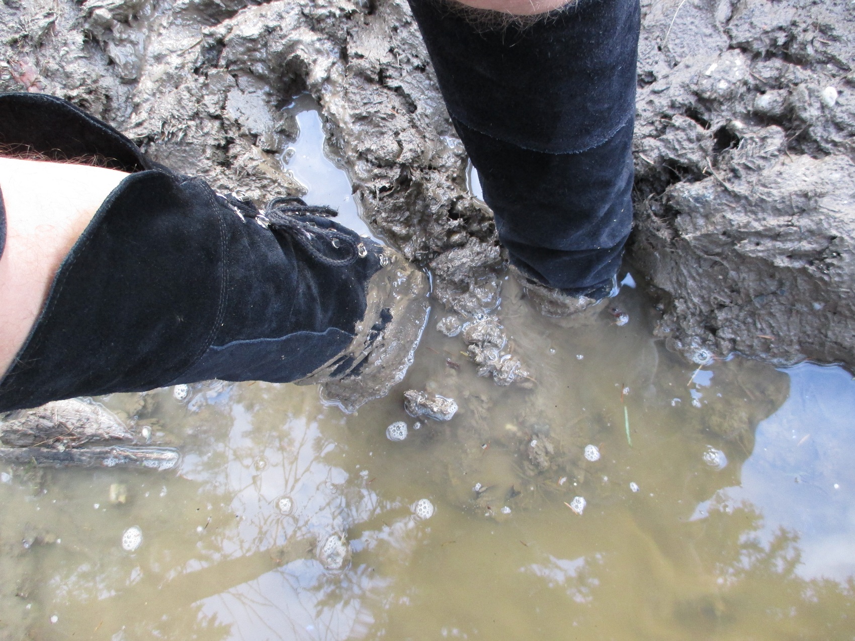 heute hatte ich mal Zeit, weiter Bilder reinzustellen. auf dem ersten sieht man wie sich die Stiefel gegenseitig schmutzig machen und auf dem nächsten, wie die lockere Erde eines Maulwurfhaufens an den nassen Stiefeln haften bleibt.