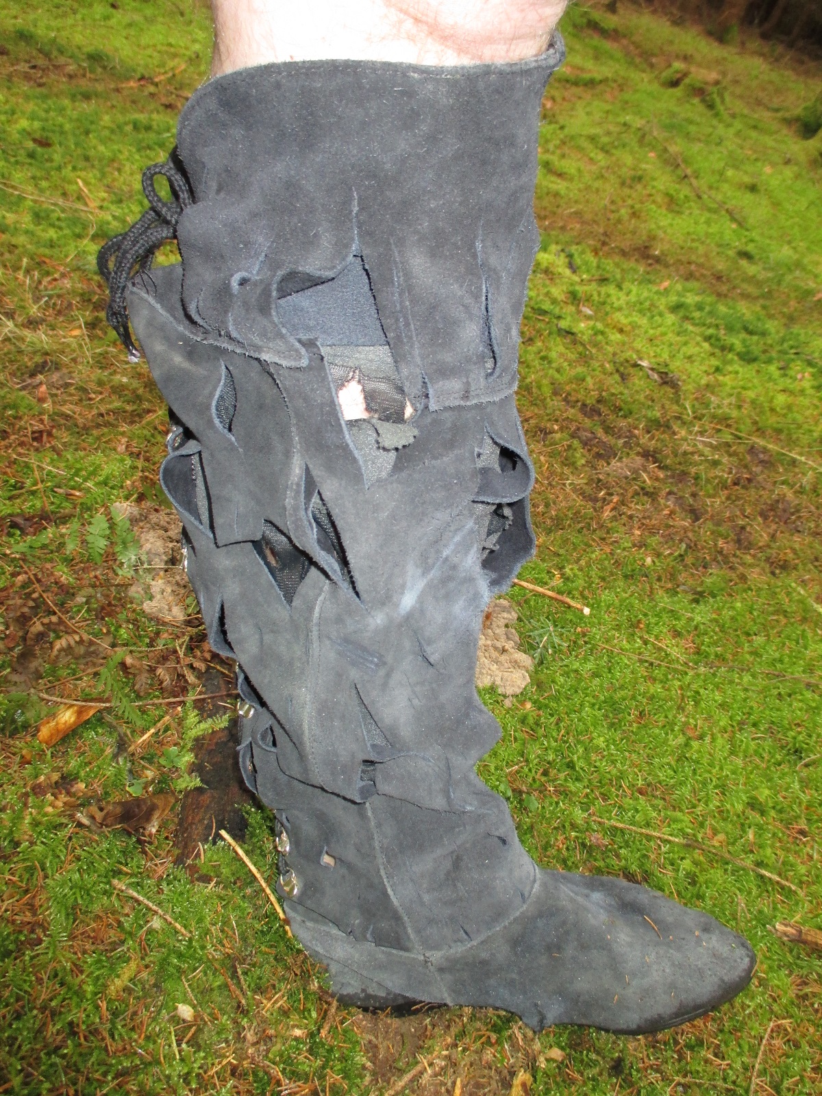 Diese wunderschönen Overknee Stiefel aus Wildleder werden bald einem Streßtest in Schlamm und Wasser unterzogen werden. Bis jetzt sind sie noch sauber und gepflegt, was sich aber nach meinem ersten Waldspaziergang sichtlich ändern wird.