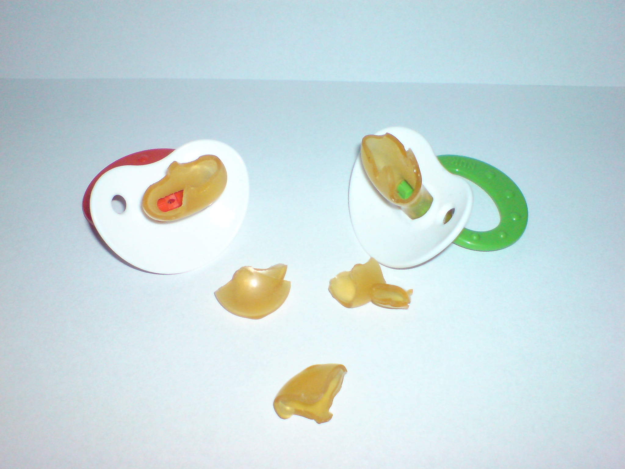 Wie versprochen, einige Bilder von Schnullern, die (leider) nicht mehr zu gebrauchen sind.