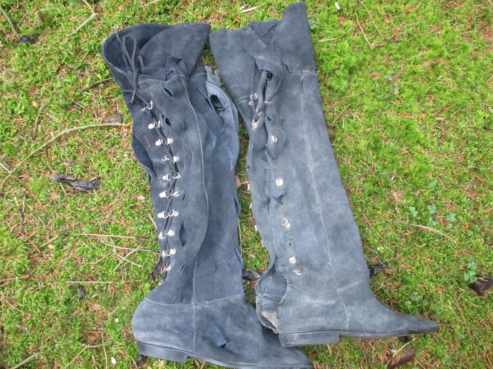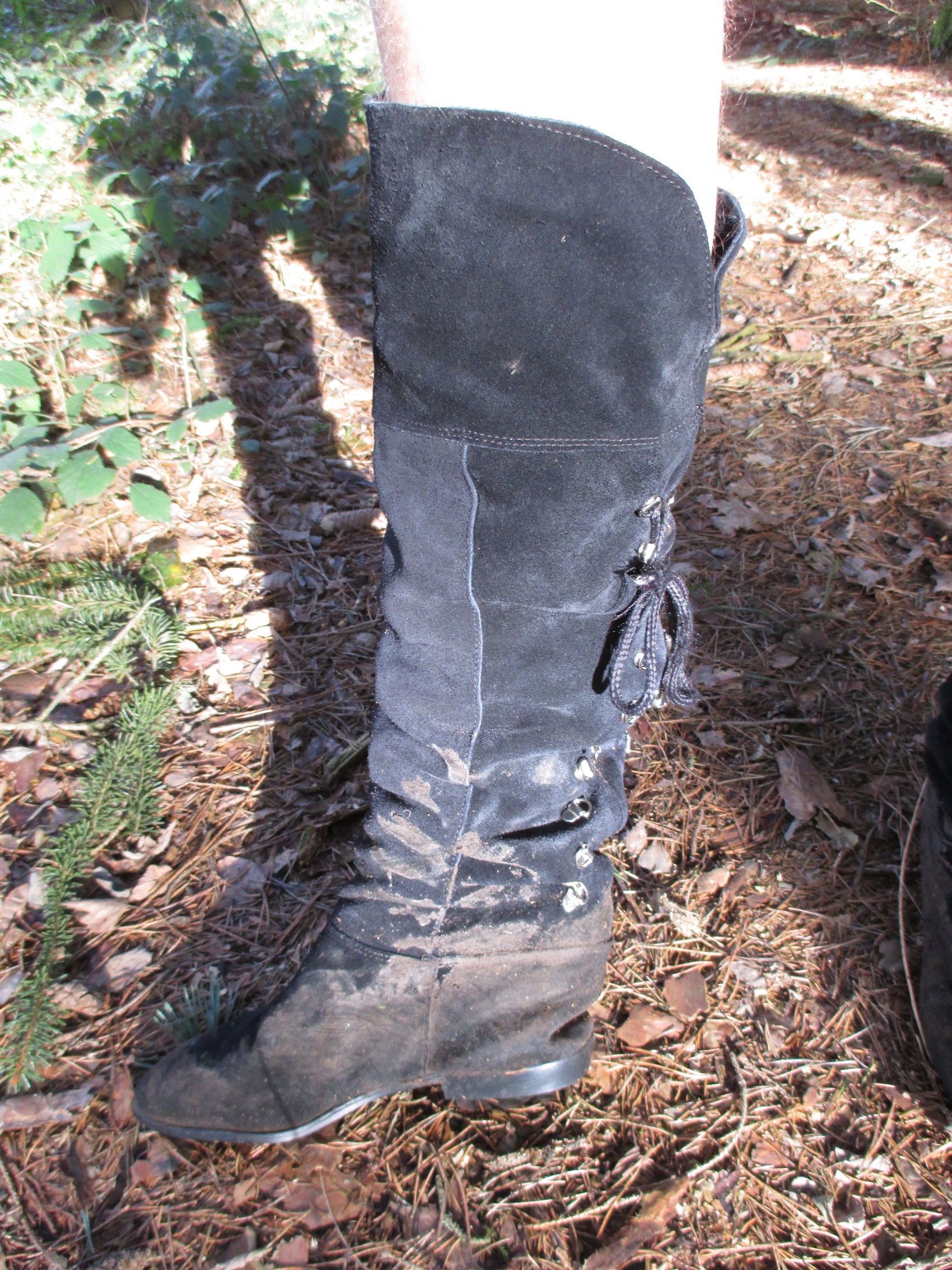 Diese wunderschönen Overknee Stiefel aus Wildleder werden bald einem Streßtest in Schlamm und Wasser unterzogen werden. Bis jetzt sind sie noch sauber und gepflegt, was sich aber nach meinem ersten Waldspaziergang sichtlich ändern wird.
