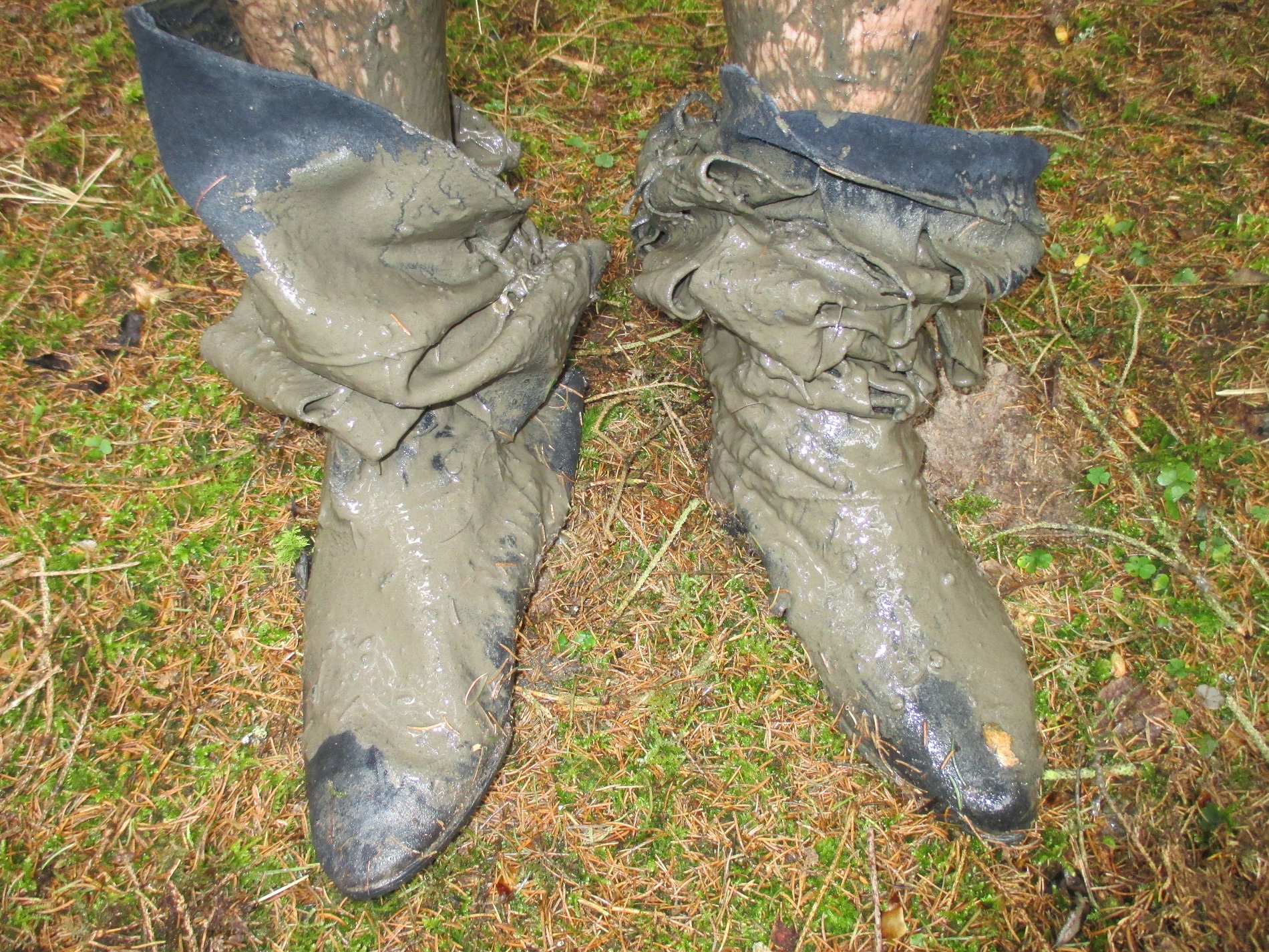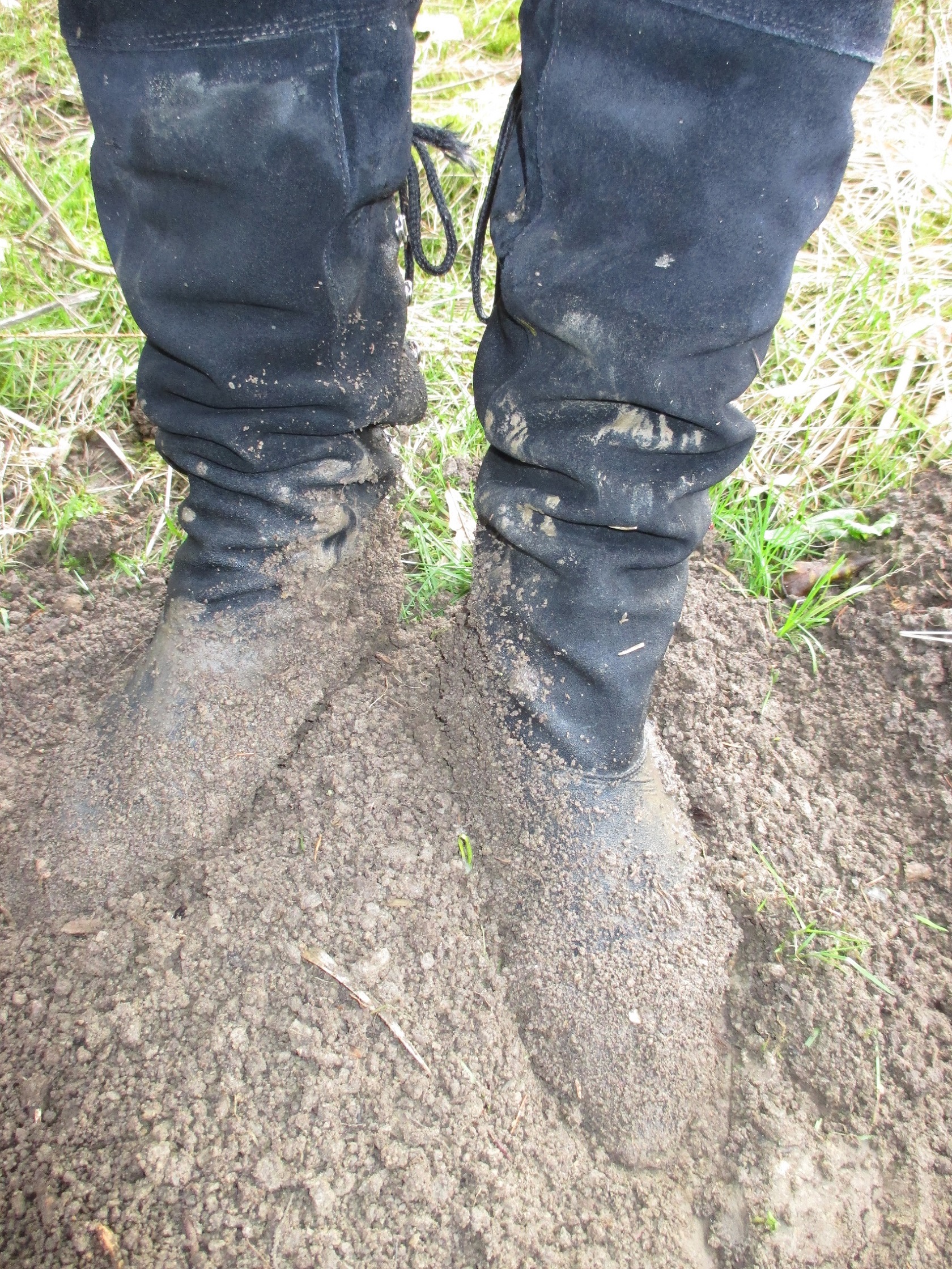 heute hatte ich mal Zeit, weiter Bilder reinzustellen. auf dem ersten sieht man wie sich die Stiefel gegenseitig schmutzig machen und auf dem nächsten, wie die lockere Erde eines Maulwurfhaufens an den nassen Stiefeln haften bleibt.