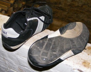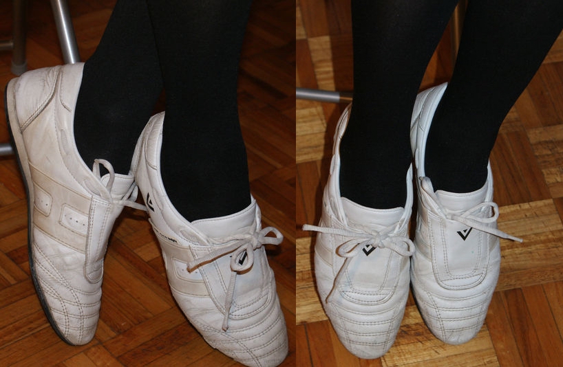 Daher werden wir mal ein Paar Echtleder-Sneakers aus meinem wirklichen Tragebestand vorschriftsmäßig einäschern, die ich unmittelbar vor diesen Fotos noch einmal gemeinsam mit meinen schwarzen Nylons getragen hatte, als ich ein Paar Stiefel verbrannte. Auch wenn es jetzt vielleicht Einige wünschen würden, ich habe leider keine Schweißfüße