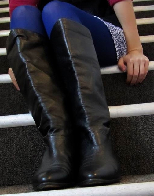 Die füsse und nylons bitte in schicken stiefel zeigen