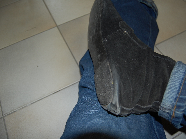 Dann hob der Fahrer den ersten Pike vom Boden auf, entdeckte dabei die an der Spitze abgelösten Sohle und bog sie mit seinen klobigen Fingern in den dreckigen Handschuhen prüfend auseinander, nahm einen kräftigen Zug an seiner Zigarre und steckte dann den hell aufglimmenden Stumpen seiner Zigarre so zwischen die Sohle und dem Oberleder, dass er dort gut eingeklemmt war. Dann betrachtete er sein Werk und erfreute sich lachend wie der Zigarrenrauch unter der Schuhspitze hervorqualmte. Wir nehmen keine qualmenden Mauken mit. Und so komische schon gar nicht. Dann stellte er den wohl einzigen Zigarre rauchenden Pike der Welt auf den Bordstein und überließ ihn seinem Schicksal. Mit einer verrosteten Metallstange stach er mehrfach den Schuh auf der Ladefläche. Als er ihn endlich an der Angel hatte, schleuderte er ihn hinter dem Transporter auf die Straße. Die beiden Typen stiegen ein. Das Auto wurde gestartet und nachdem der Fahrer ordentlich das Gaspedal traktiert hatte, bildete sich eine schwarze Rauchwolke aus dem Auspuff. Es erklang "Muss i denn…“ Oh nein. Und dann fuhren sie weiter.
