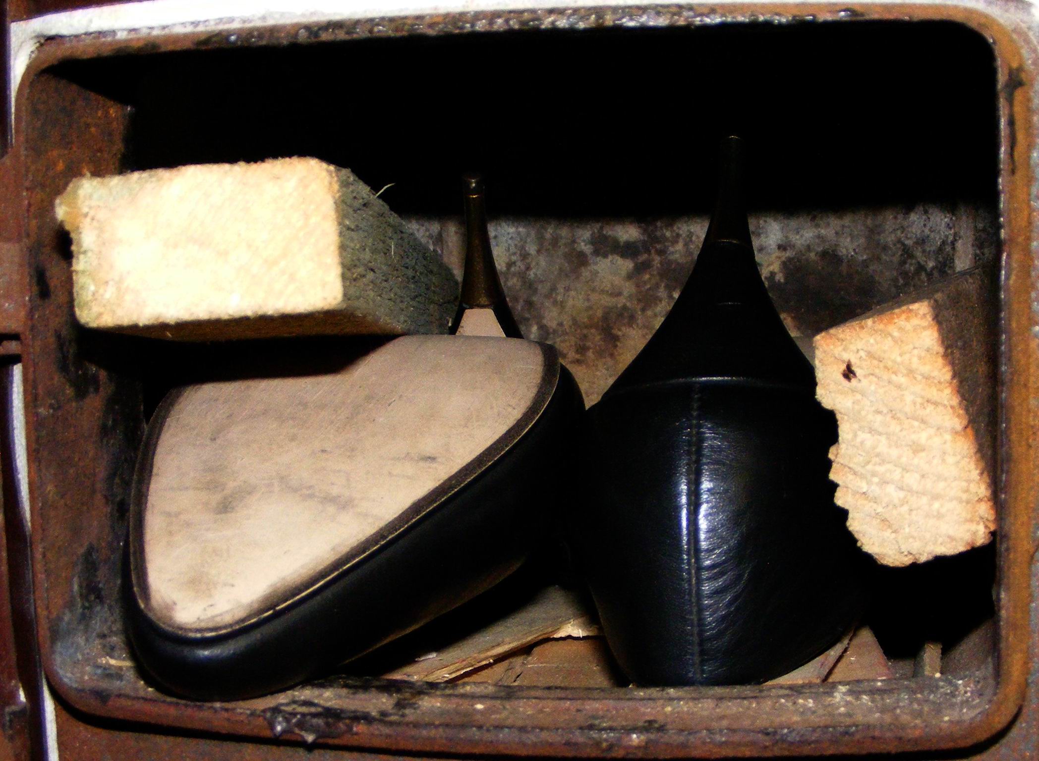 Da ich ja meinen oft getragenen Schätzchen kein ernsthaftes Leid antun würde, habe ich mich für eine Kopfkino-Serie entschieden. Als Kulisse dient natürlich wieder mein (Ex-) Badeofen, der zu Lebzeiten sicher weit über 3.000 Paar zarte Lederschühchen gefressen hat! :twisted: :twisted: :twisted: