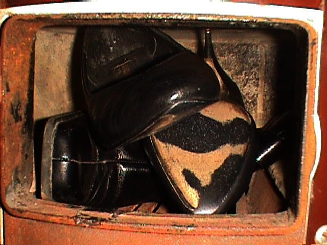 Ich habe noch gut in Erinnerung, wie die langsam schmelzenden Absätze brennende Tropfen in den Aschekasten sickern ließen, die dort weiter brannten, während sich oben auf dem Rost das Leder des Schuhes/Stiefels langsam windend von den fauchend fackelnden Sohlen löste und der Ofen sich stetig langsam erwärmte. Die Temperaturen im Brennraum erreichten bei kontinuierlichem Nachlegen solche extremen Werte, daß Metall-Reißverschlüsse und Zinkschnallen funkenspritzend verbrannten (die mir so manche Feinstrumpfhose zerlöchert hatten) und sogar die Federeisen zu Schlacke verschmolzen! Mancher lange Stiefel begann bereits so schnell und fürchterlich zu brennen, noch während ich ihn hineinstopfte! Und, nicht zu vergessen, am Besten zog der Ofen, wenn man die Tür ein klein wenig offen ließ, daß oben manchmal die Flammen herausschlugen und das Höllenfeuer bestialische Brenngeräusche entwickelte! :twisted: :twisted: :twisted: