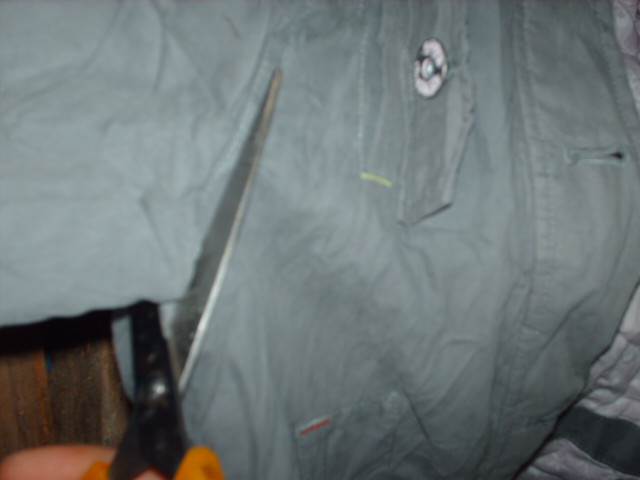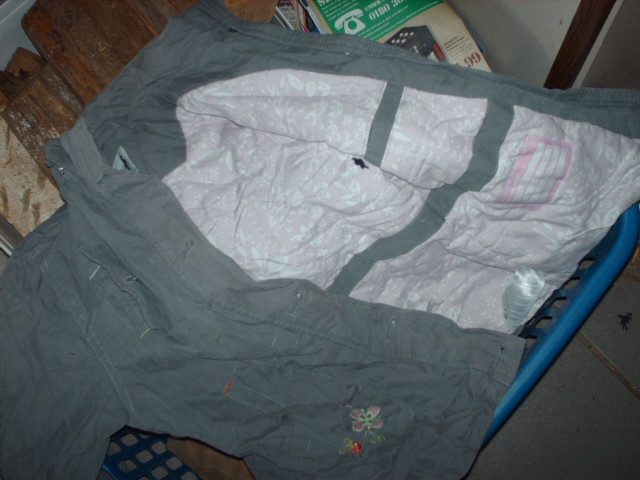 erst mal vorbereiten des Anoraks auf sein schicksal ,die Ärmel müssen ab