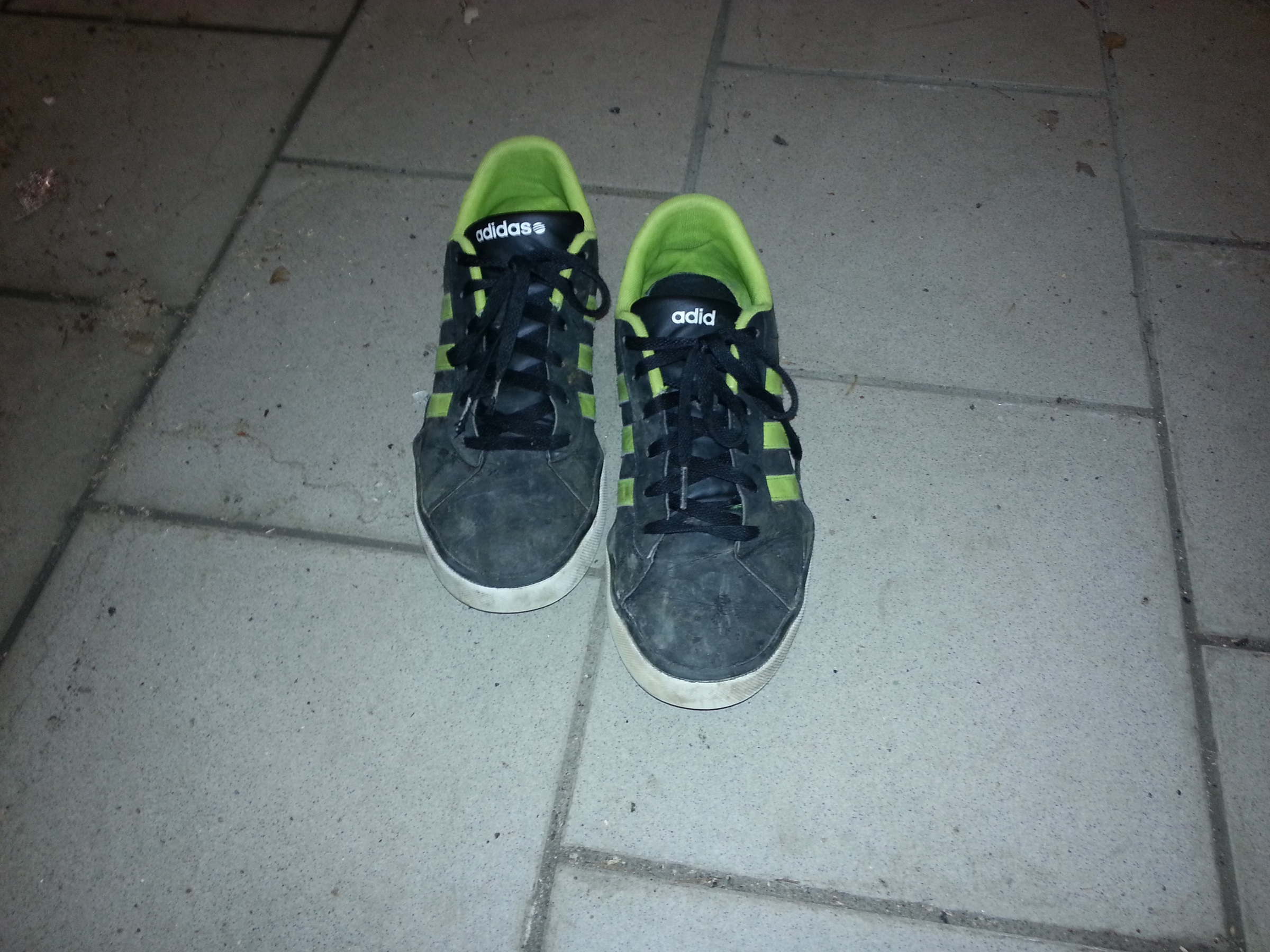 Als ich nach einem Wein für heute Abend Ausschau gehalten hab viel mir Vater und Sohn an der Wursttheke auf. Der Junior trug alte abgelatschte Adidas Neo Sneaker in dunkelblau mit Zitronengelben Streifen an den Füßen. Soweit ja nichts Besonderes da gerad sehr angesagtes Model bei den Kids. Was mich aber erregte war, das diese an der Ferse ca. um 45 Grad bis zum Schaft abgelaufen waren und sich die hochgezogene Sohle im Vorfus Bereich bereits vom Schaft abgelöst waren.