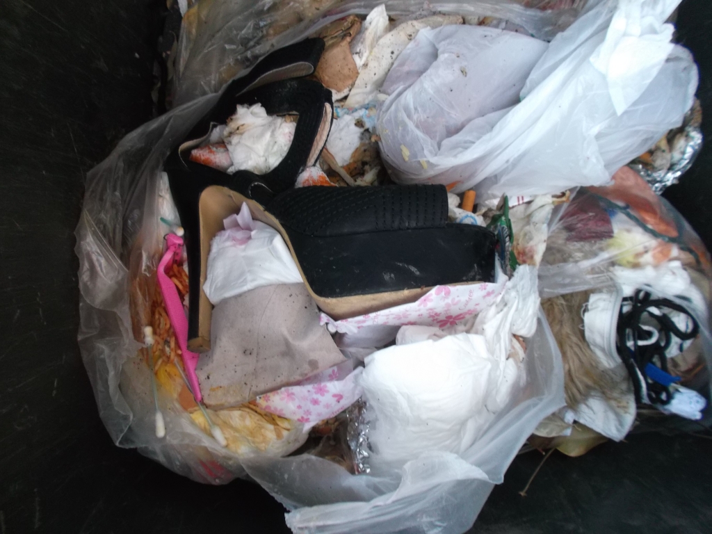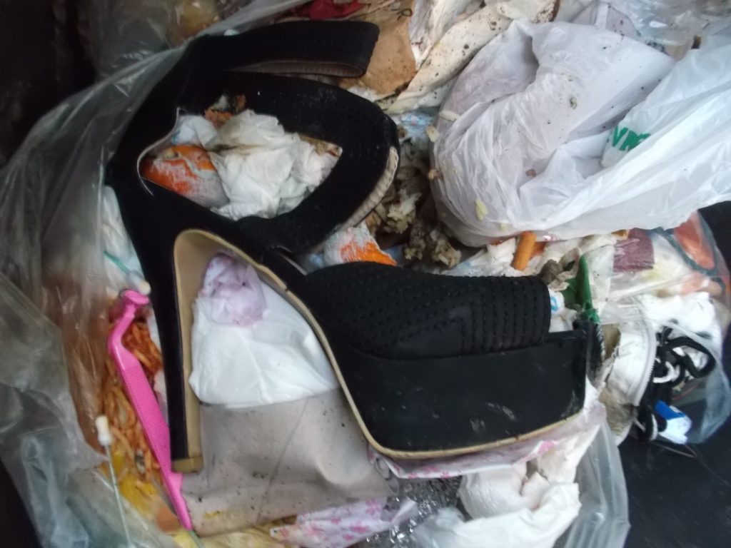 Erfreulich, dass wenigstens dieser Müllbeutel "sicher" in der Mülltonne lag, denn ich befürchtete schon sein Aufreißen durch die vielen Heels.