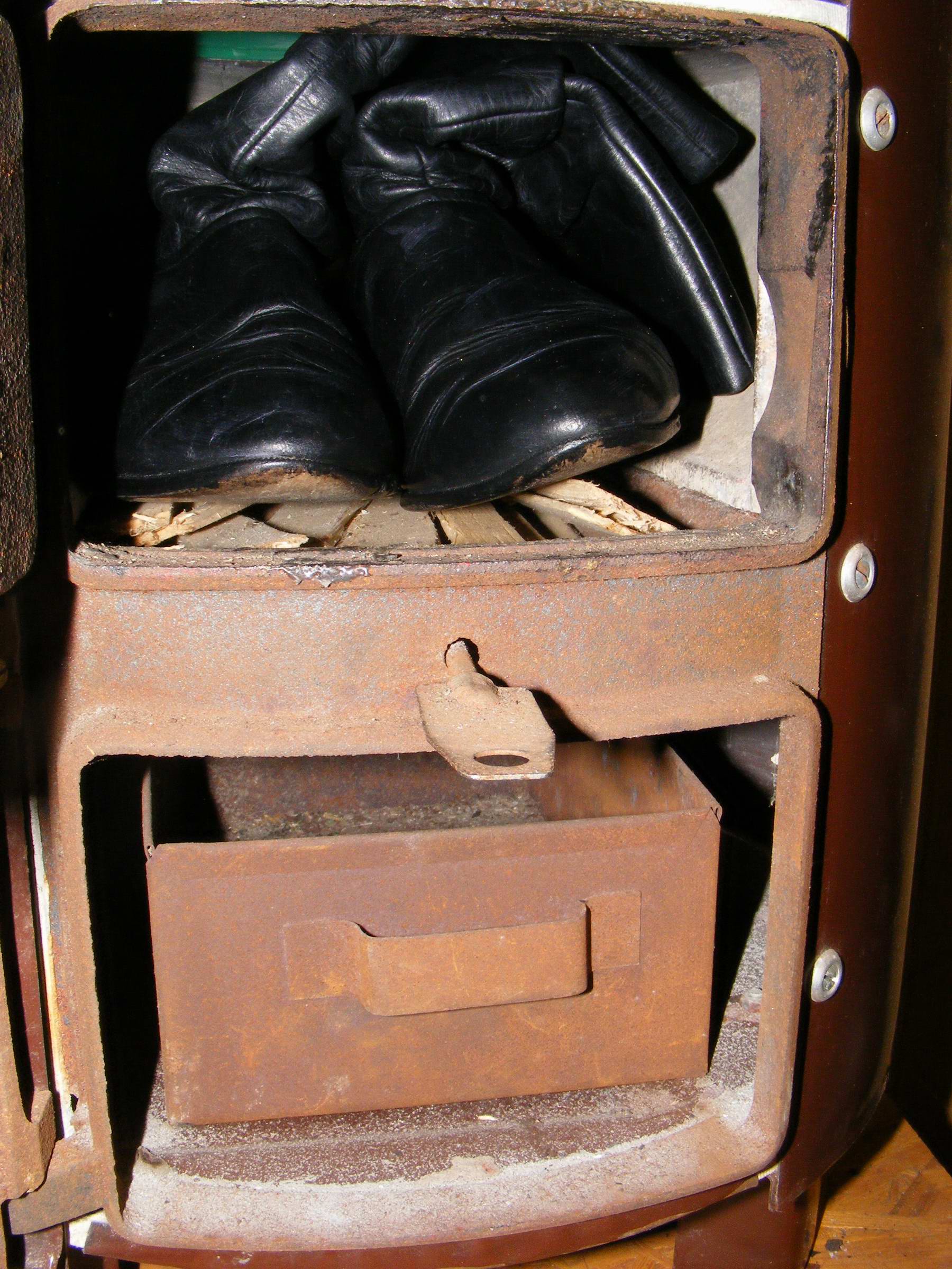 So sind diese nachgestellten Bilder doch eigentlich nichts Ungewöhnliches für meinen geliebten Badeofen! Lediglich die beiden Paare gleichzeitig auf dem Rost sind eine echte Übertreibung. Diese Schuhe konnte man wirklich nur einzeln verbrennen (siehe erstes Bild), sonst hätte die wahnsinnige Hitze den Ofen zerstört! :mrgreen:
