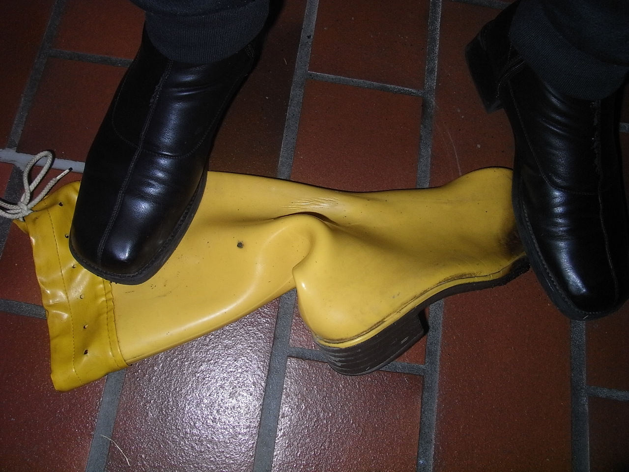 Ich habe zwar keine gelben PVC-Stiefel, aber grüne von Phönix, sind allerdings nicht ganz hoch, gehen nur bis zur Wade... :?