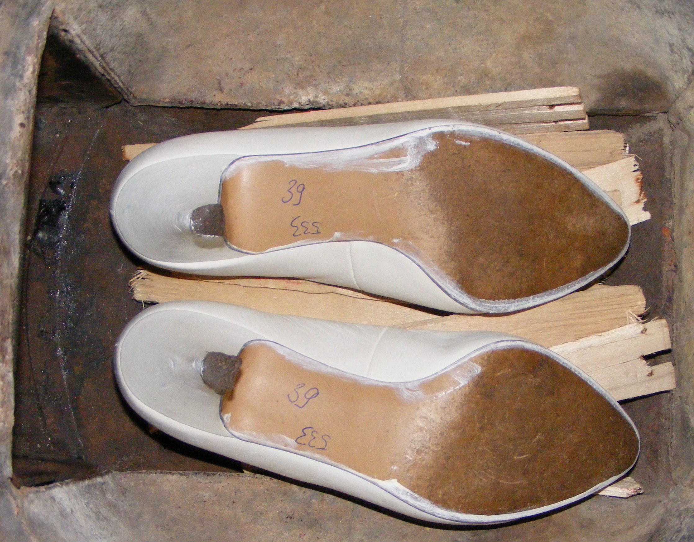 Eigentlich wirklich schade um die weissen, die sehen wirklich hochwertig aus, sogar mit Ledersohle, vielleicht waren das mal Brautschuhe? Weisse Pumps sind irgendwie ansonsten ziemlich selten, warum mögen das Frauen nicht?!? Haben die noch eine Gnadenfrist bis zur nächsten Heizsaison oder werden die vorher zur Teilegewinnung geschlachtet?