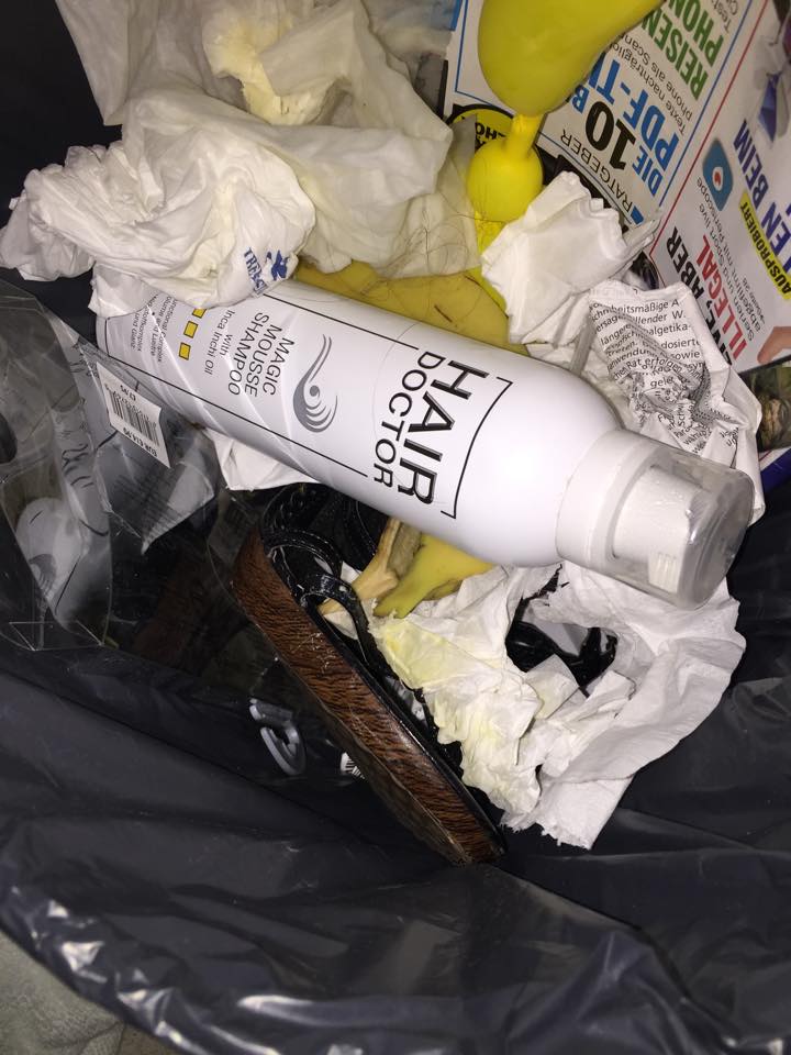 Schon wenige Stunden später hat sie weitere Speisereste und anderes draufgeschmissen. Wenig später verließen wir Spanien und die Schuhe dürften nun im spanischen Restmüll irgendwo schon vermodert sein.