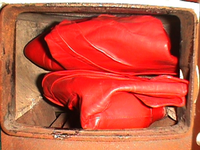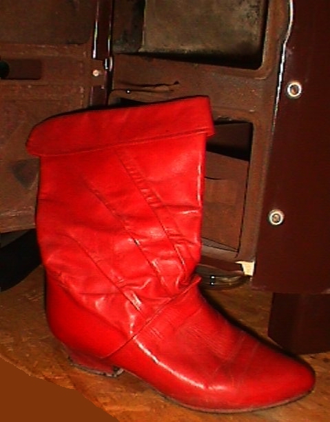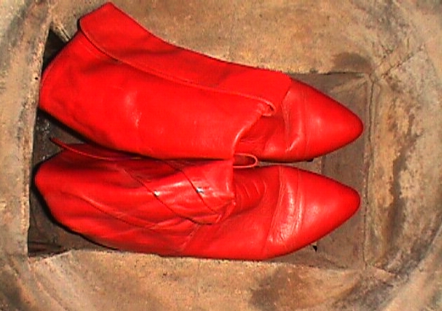 Während ich die nicht noch einmal getragenen schwarzen, nietenverzierten Stiefeletten nach einigen Jahren "Liegezeit" verbrannt hatte, trug ich diese Roten noch sehr oft und gern. Beim ersten Umzug hatte ich sie dann in einen Karton verpackt und seitdem nicht wieder ans Tageslicht gebracht.